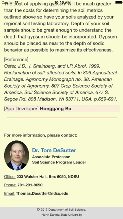 The Gypsum Requirement app can be used to answer the question “how much gypsum should I apply to my sodic soil?” The calculator is based on the equation developed by North Dakota native Dr. James Oster and others. The app is easy to use and allows one to easily determine the Gypsum Requirement for sodic soils.
