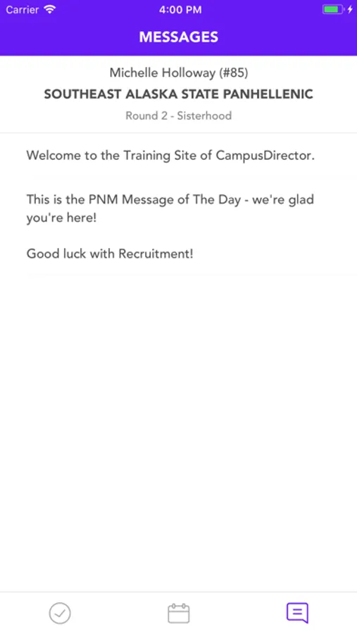 PNM Companion is an iOS recruitment tool that allows Potential New Members (PNMs) to easily access their recruitment selections, schedules, and messages by integrating directly with CampusDirector, your council recruitment technology.
