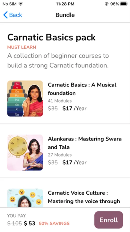 Get a guided practice video at the end of each lesson, to sing and master the lesson taught.