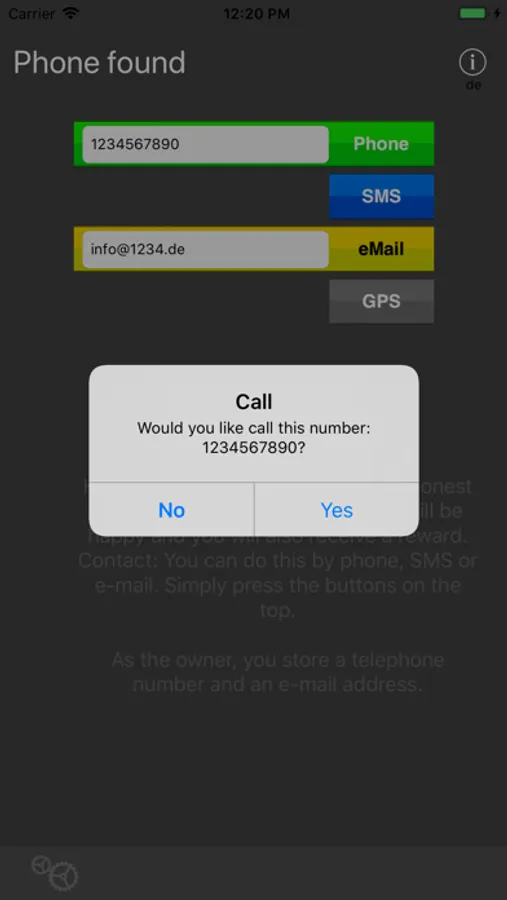 It can happen that you lose your phone or tablet. Here the app helps a little to get your phone back. As owner you save a telephone number and email address. The 'honest' finder can now contact you and you have a greater chance to get the device back.