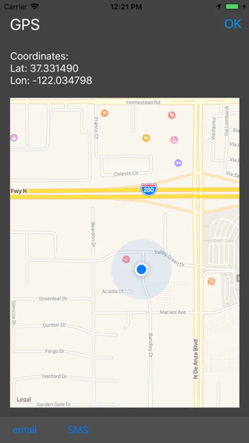 - Send GPS coordinates (eMail, SMS)