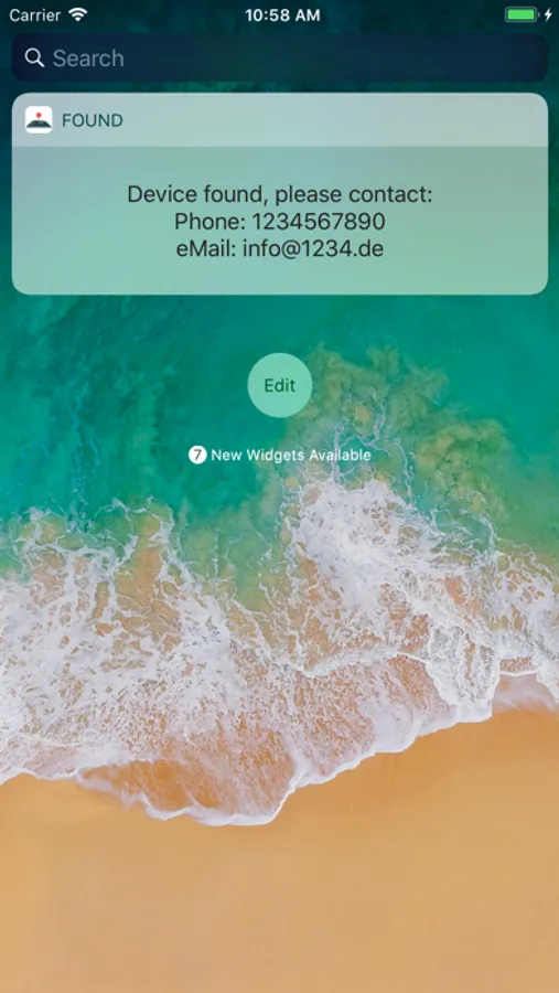 * Even if you use a lock code (code, touch ID, face ID), it is possible to contact the owner. For this purpose, a Today widget is integrated, where the telephone number and email are displayed. From the lock-screen, you can see the Today screen.