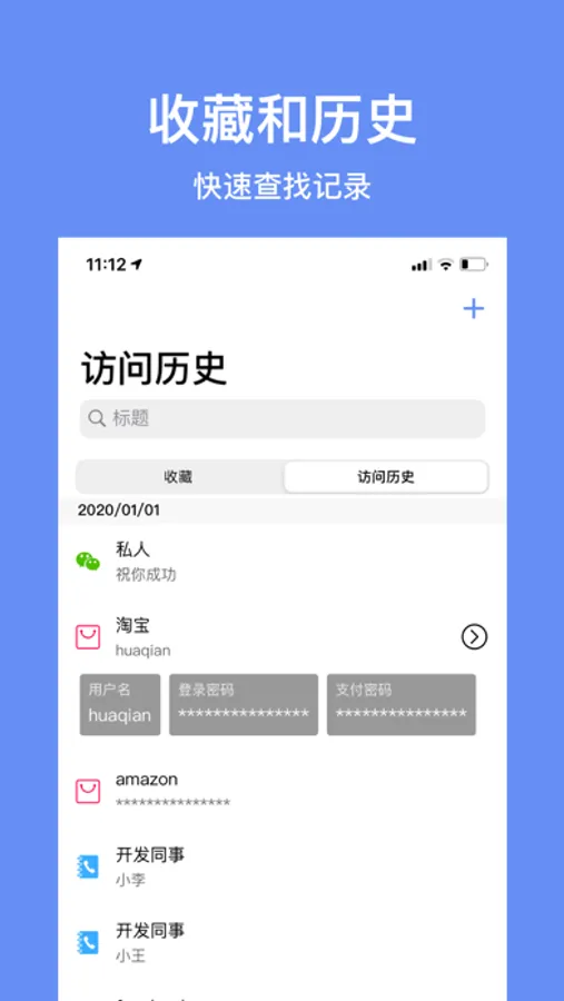 3. Support star sign, view history, search, label multi-dimensional password management