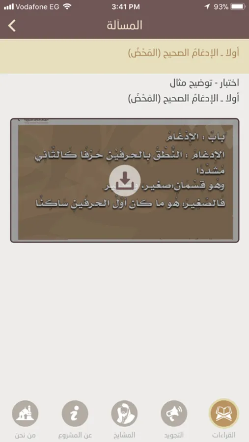 هو مشروع صوتي مرئي تطبيقي عالمي، يُعنَى بضبط أهم الدقائق الأدائية في التجويد والقراءات ،عبر تقديم نماذج تعليمية مرئية، وفق طرق عصرية تستند إلى منهجية علمية؛ من أفواه كبارالمشايخ المقرئين المتصدرين في العالم الإسلامي،والمتصل سندهم بالنبي (ص).