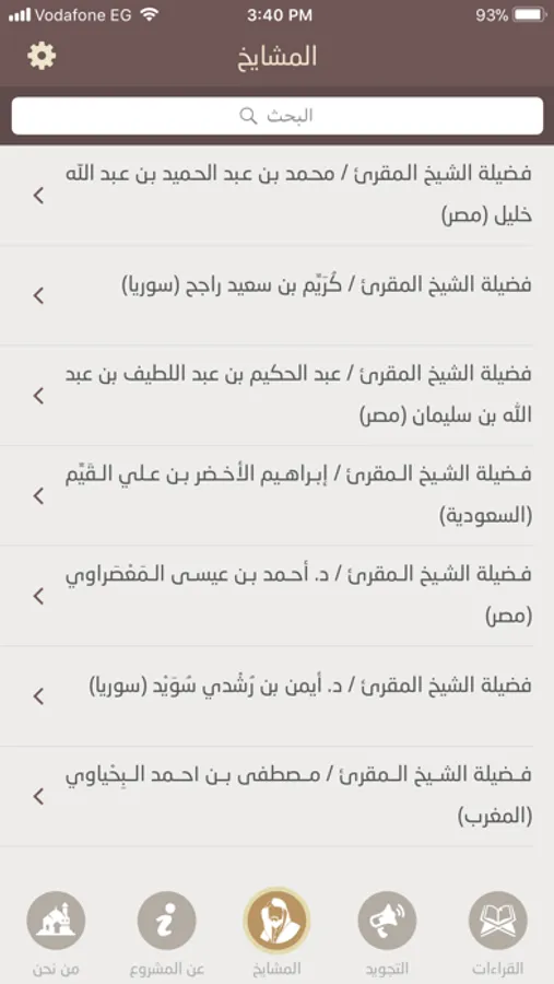 وقد شارك في هذا المشروع العالمي كبار الأئمة المشتهرين بالإقراء في العالم الإسلامي، وعددهم : أحد عشر شيخا من :المملكة العربية السعودية، ومصر ، والشام ، والعراق ، وتونس ، والمغرب .
