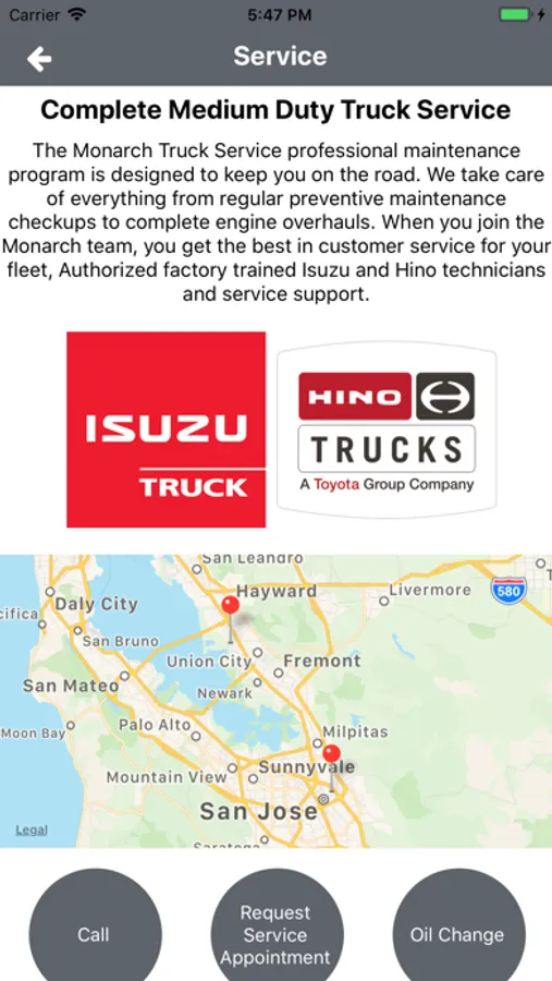 Monarch Truck Center, the authorized dealer for Isuzu and Hino Trucks, is the undisputed Bay Area leader in new and used medium duty truck sales-leasing and rentals. With years of experience in building various truck applications for their own rental/lease fleet, Monarch has learned how to design a truck that will fit the needs of businesses in a variety of different industries and stand up to the harsh world of day-to-day use. Being in the rental/leasing business since 1976, Monarch’s friendly and knowledgeable staff can provide expert advice about the ins and outs of all truck body applications. With a 250 plus rental/lease fleet of box vans, flatbeds, dumps, and refrigeration trucks, Monarch knows what it takes to maintain your vehicle and keep it running smoothly. Their factory trained technicians, truck repairs, parts-service department, and body shop service will help your company’s medium duty truck stay on the road and operate at peak performance well past the warranty date.