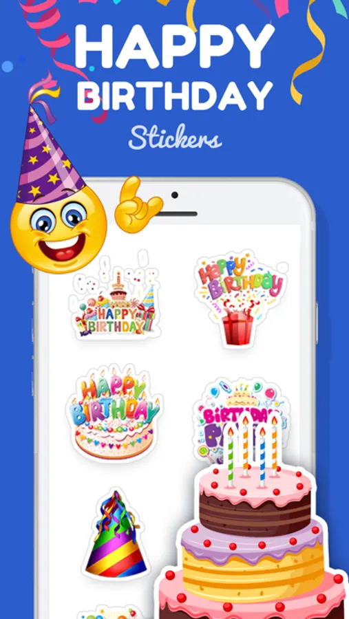 - Different kinds of emojis like smileys for happy birthday, big yellow face emojis, flower emojis, hearty valentines, love stickers and rose stickers.