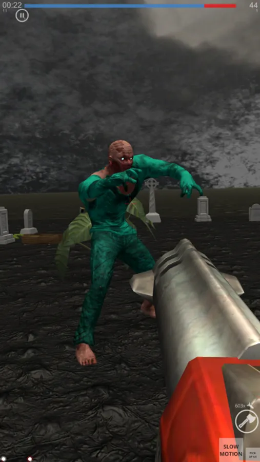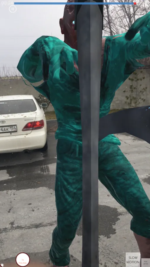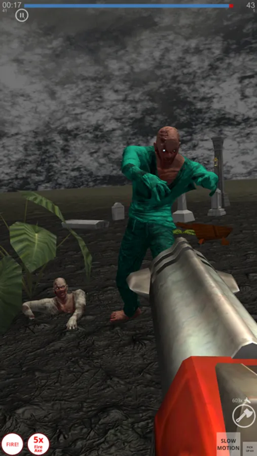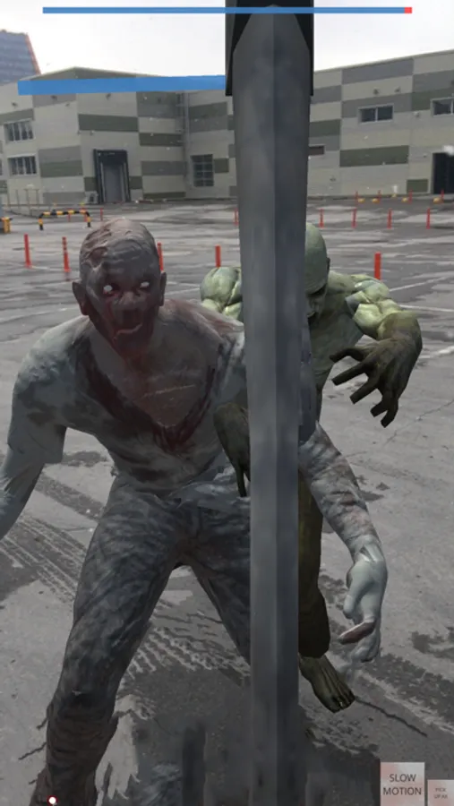 Zombie XR is a game in augmented reality, where you have weapons in your hands and you fight with zombies. You do not need presss bouttons to throw an ax. You can fight them waving the iPhone yourself, as you approaching the zombies.