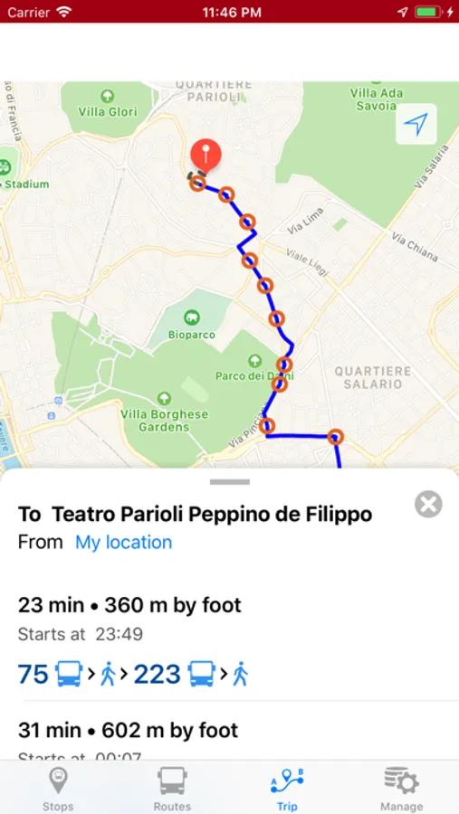 You can see the bus trip and stops on the map.