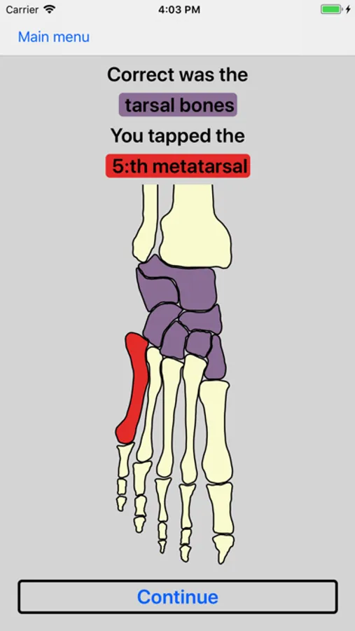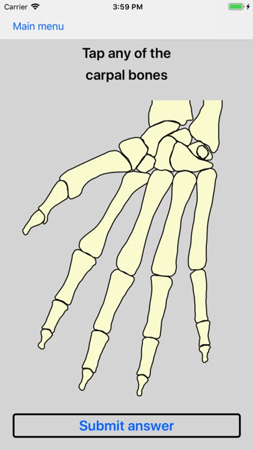 In Tap to learn the name of a bone is displayed and you're supposed to tap the correct bone. Double tap to submit the reply.