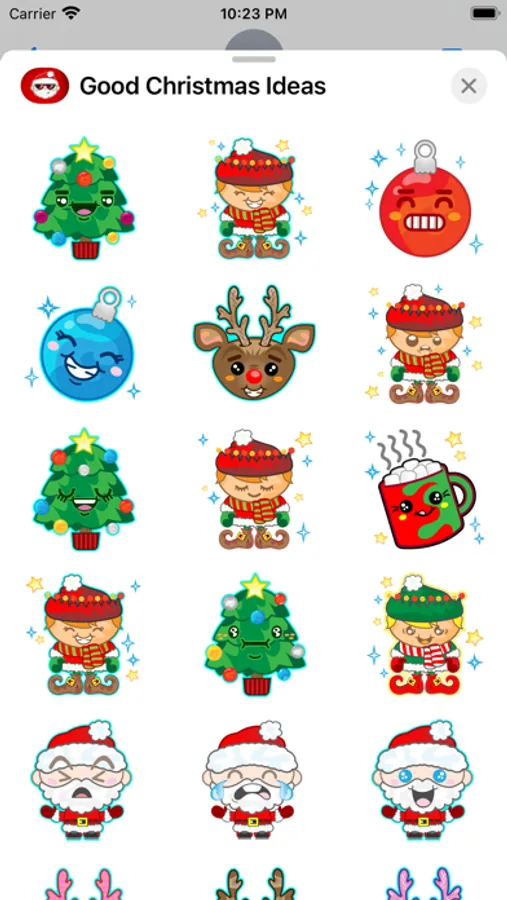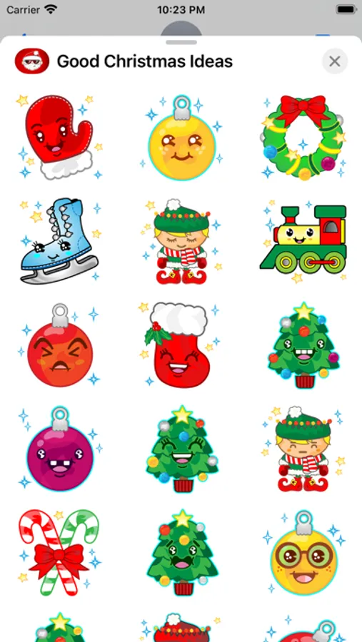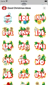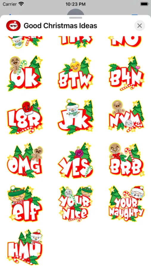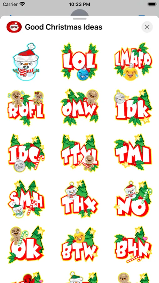 "Good Christmas Ideas" is a collection of digital stickers that has over 30 popular acronyms i.e.: "LOL", "TTYL" and "OMW" along with various one word statements i.e.: "YES", "NO" and "OK".