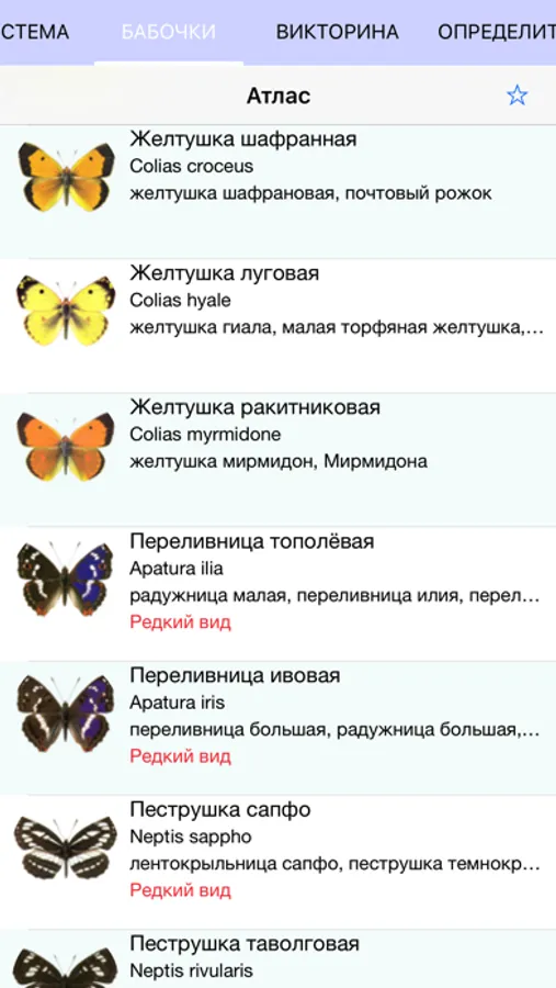 Атласом можно пользоваться и независимо от определителя — просматривать описания и изображения видов бабочек.