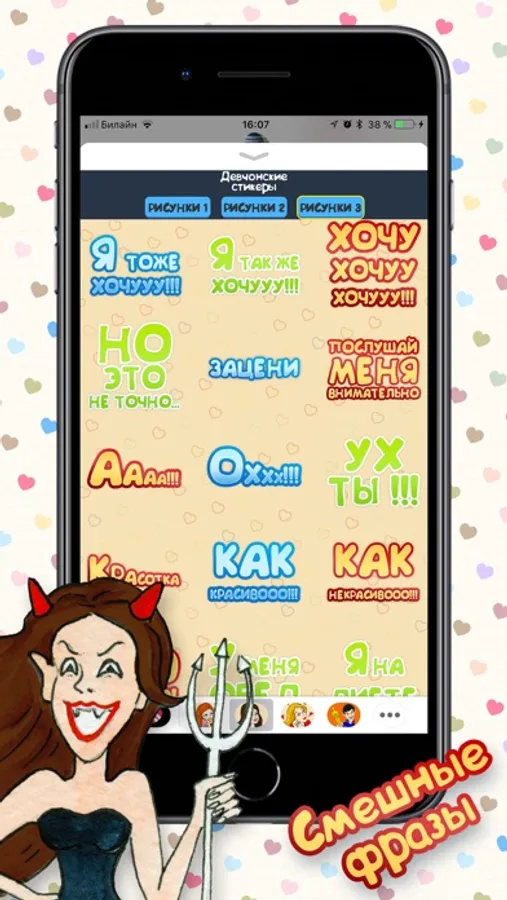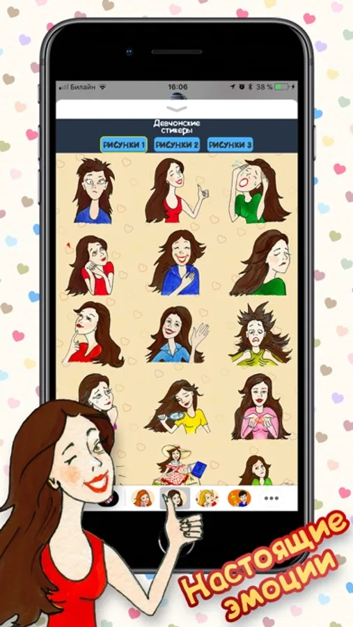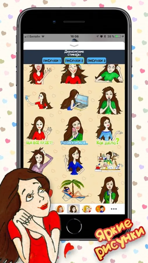 ● Мы нарисовали стикеры в трех вариантах и создали три приложения - Блондинка, Брюнетка и Рыженькая:) Выбери и скачай свой набор!