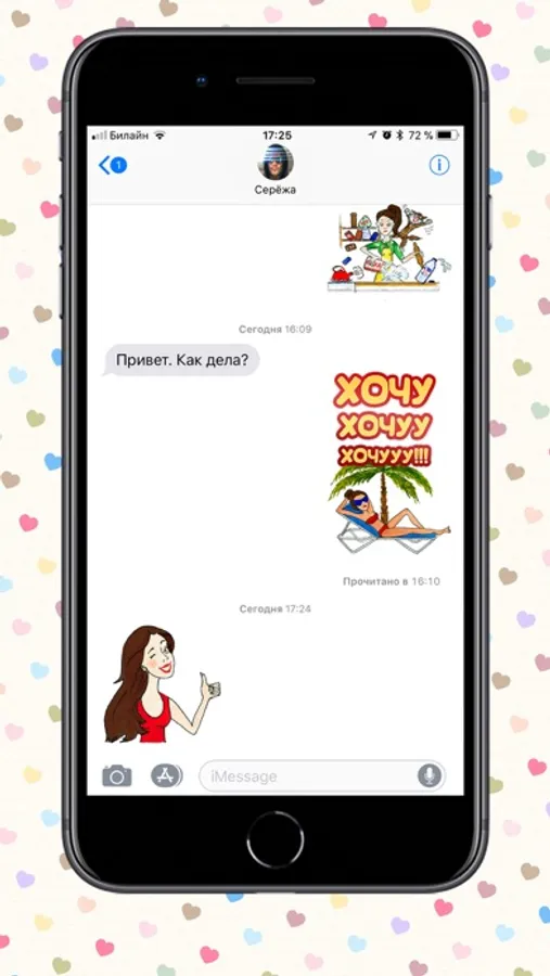 5. Войдите в iMessage, выберите контакт, кому Вы хотите отправить стикер, нажмите на стикер и отправьте!