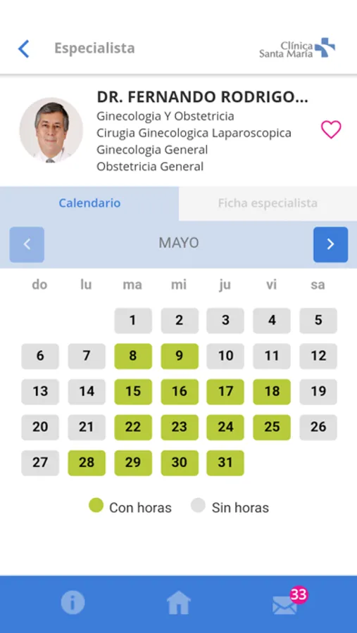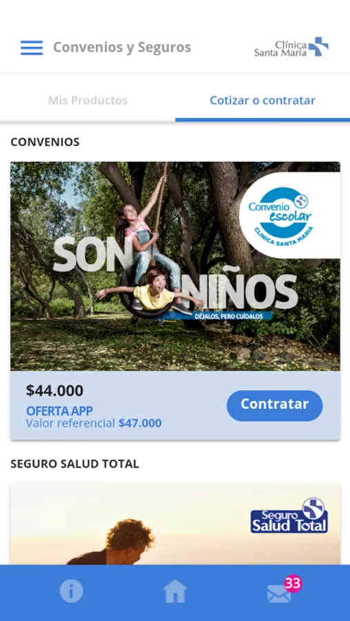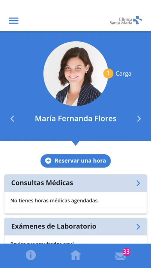 ¡Bienvenido a la nueva App de Clínica Santa María! Aquí encontrarás toda tu información de salud, podrás reservar horas médicas y revisar tu historial de consultas, seleccionar a tus médicos favoritos, ver el resultado de tus exámenes generales y de laboratorio, revisar y contratar productos, y pagar tus cuentas.