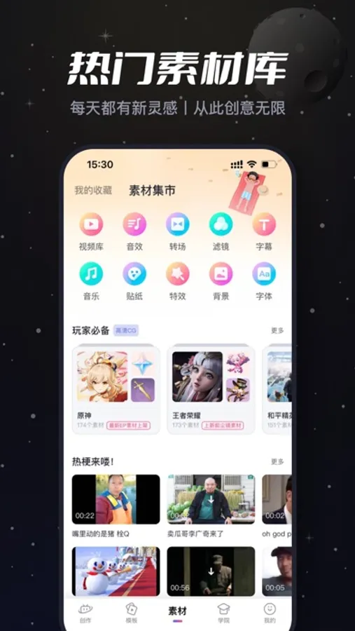 『我的素材库』一键添加常用素材,剪辑时添加素材更快捷!