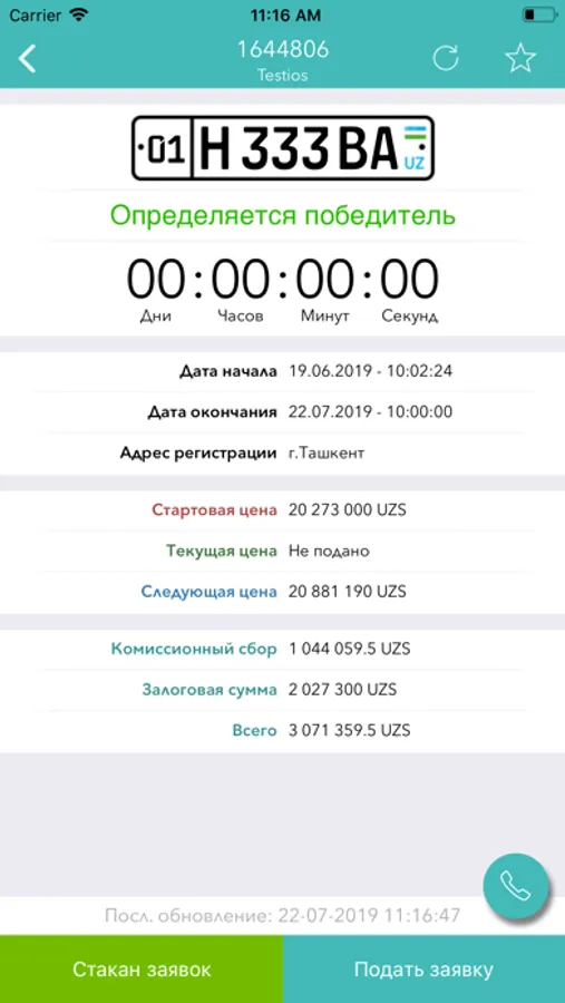 Приложение позволяющее участвовать в аукционе государственных автомобильных номеров.