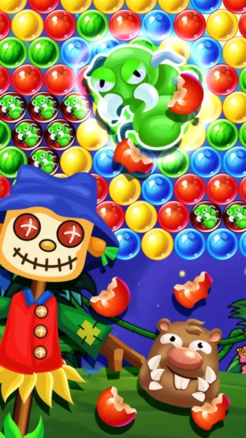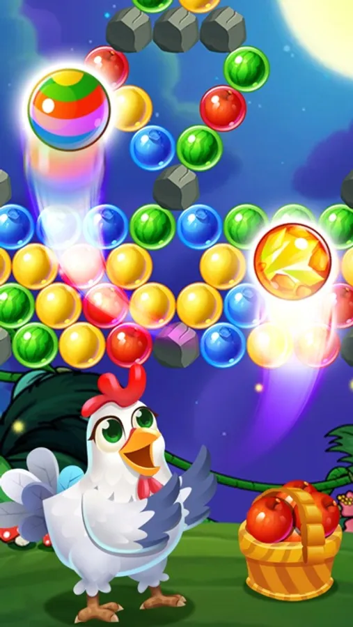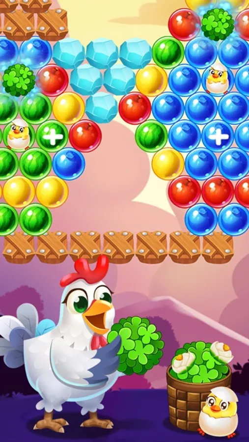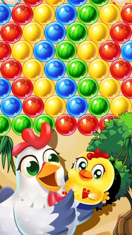 To play this game is really simple just tap where you want to throw, make combinations of 3 or more fruit bubble with same color to make them explode and collect the chicks are trapped in the magic ball to win.