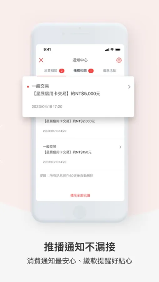 【推播通知不漏接】消費通知最安心,繳款提醒好貼心