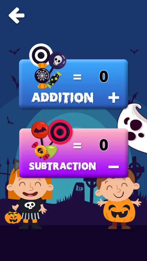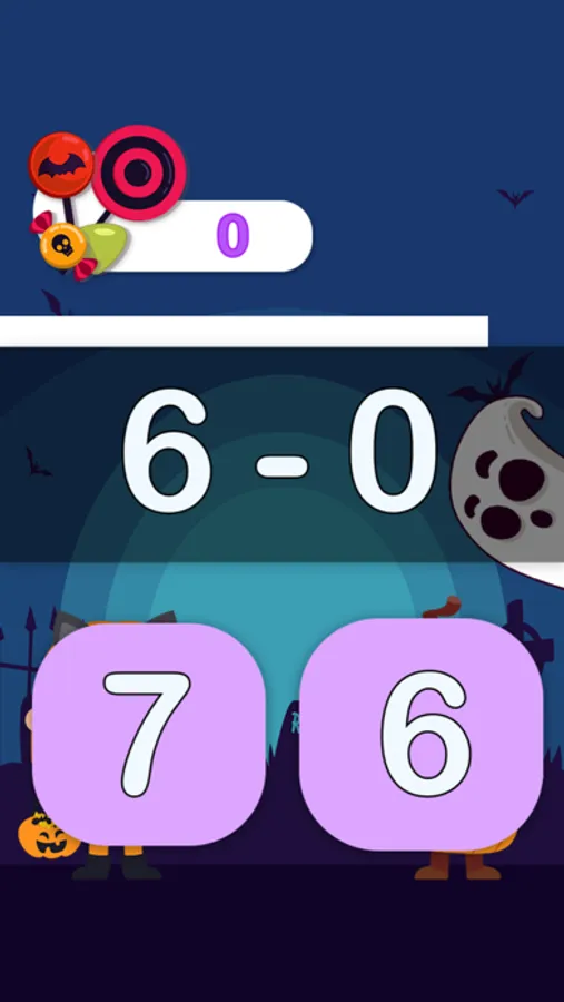 Halloween Math Game 1st Grade : This Educational game for Preschool and Kindergarten kids helps learning how to Addition and Subtraction the Numbers. Kids will love playing the game with great fun.