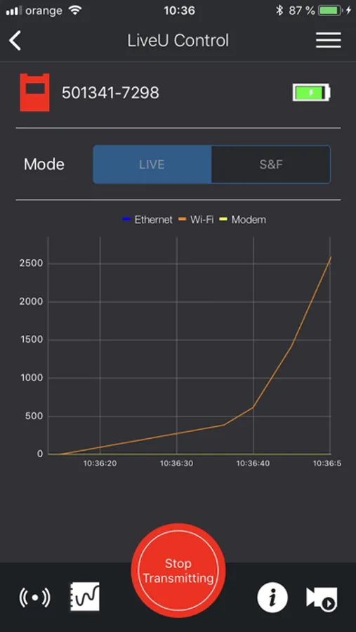 LiveU Control is the ultimate companion app to manage your LiveU equipment while on the move. Simply login with your LiveU Central credentials and you're off! Quickly select a group of units to manage, dive into a single unit and you can start, stop, change the delay, channel, and other important parameters such as network settings; one tap to see bitrate graphs, and with LU2000 version 7.0 (and higher) even the video preview.