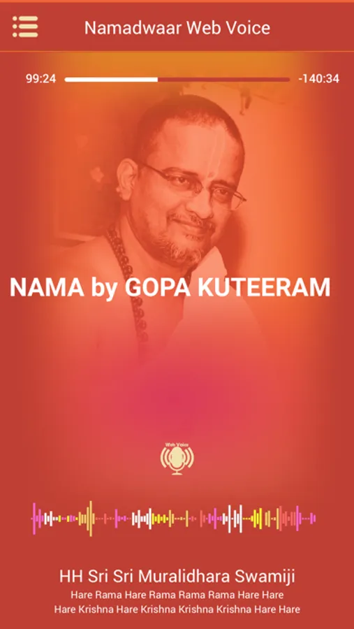 Namadwaar’s Webvoice is an online radio that keeps us in communion with satsang all through the day. With a set schedule of HH Maharanyam Sri Sri Muralidhara Swamiji’s lectures, Madhurageethams, Lectures by disciples of Sri Sri Swamiji, Slokas, Kirtans and many enriching sections on Indian Culture and Heritage, webvoice is the best company any spiritual seeker can have through their day.