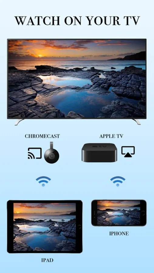 NOW also on your iPhone or iPad. Take the Screensaver to any TV with Apple TV or Chromecast.