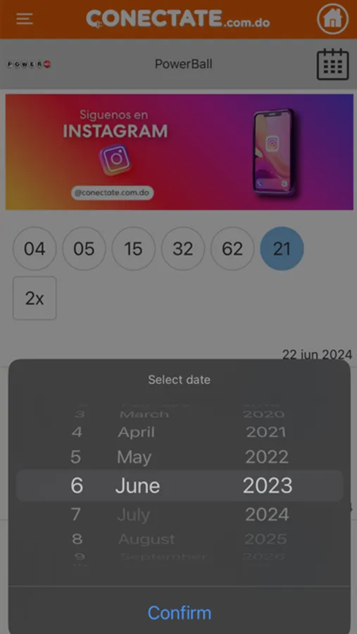 Resultados Anteriores: Presionando al calendario y selecionando una fecha puedes visualizar resultados anteriores del sorteo.