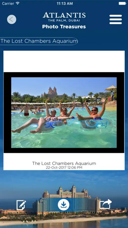 Claim your Atlantis, The Palm photographs directly via this app. You can edit your photographs using borders and special graphic content that has been specially created for your enhanced experience. Once edited, you can instantly share your photographs onto multiple social media platforms. Please note, in order to access the images, you will first need to have purchased the Atlantis Photo Treasures package from Aquaventure, Dolphin Bay, or Lost Chambers, located at Atlantis, The Palm.