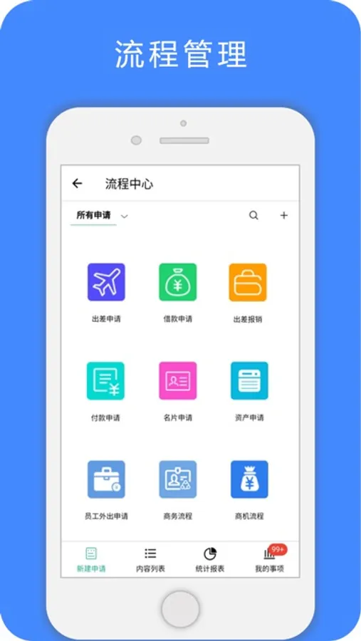 易企办提供强大的流程管理平台,帮助企业自助化进行业务表单,流程创建,任务审批,以及统计分析等全方位的流程管控。企业可根据自身业务需求进行业务与流程的创建,只需进行简单的拖拽配置,无需进行任何代码开发。