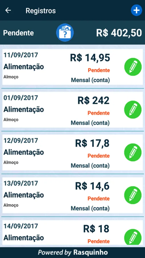 Este aplicativo foi desenvolvido para que, de maneira simples, o usuário possa registrar seus gastos diários e tenha na palma da mão sempre que precisar uma relação objetiva e simples para onde foi seu dinheiro. Todas as informações ficam locais e não são compartilhadas ou enviadas para repositórios externos.