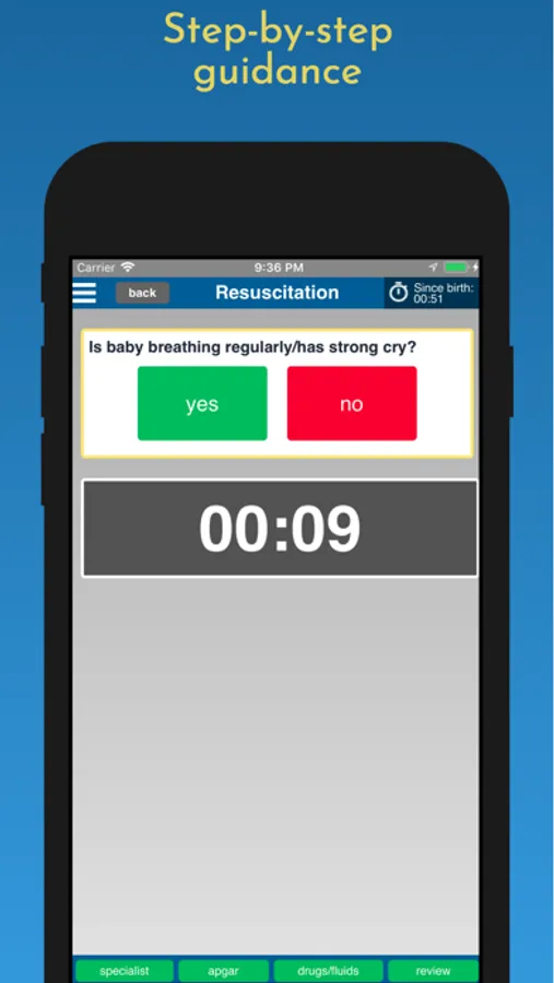 Step-by-step navigation, audio instructions, built-in timer for critical actions, illustrations, automatic drug dosage selection based on baby weight - all help students become proficient quicker.