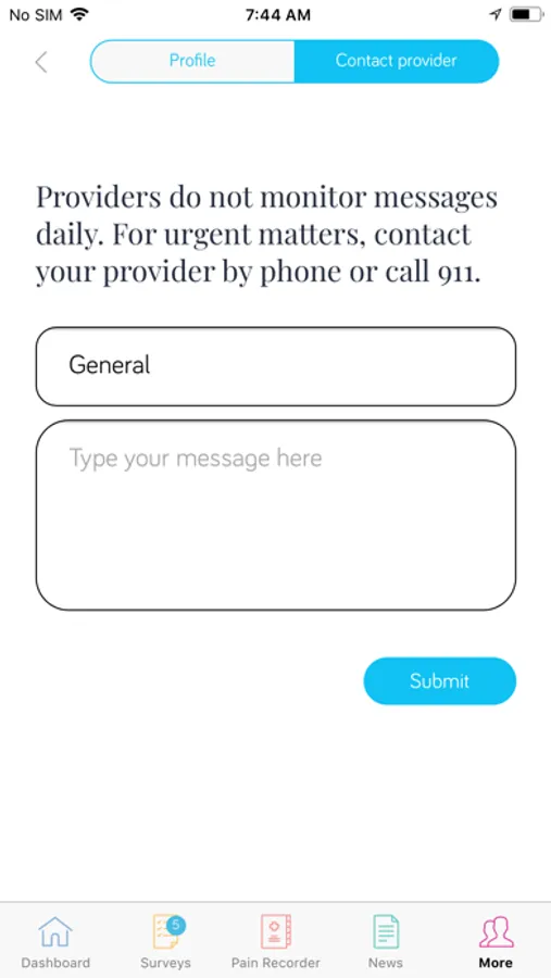* Please note, providers do not monitor messages daily. For urgent matters, contact your provider by phone or call 911.