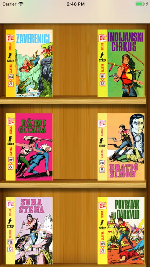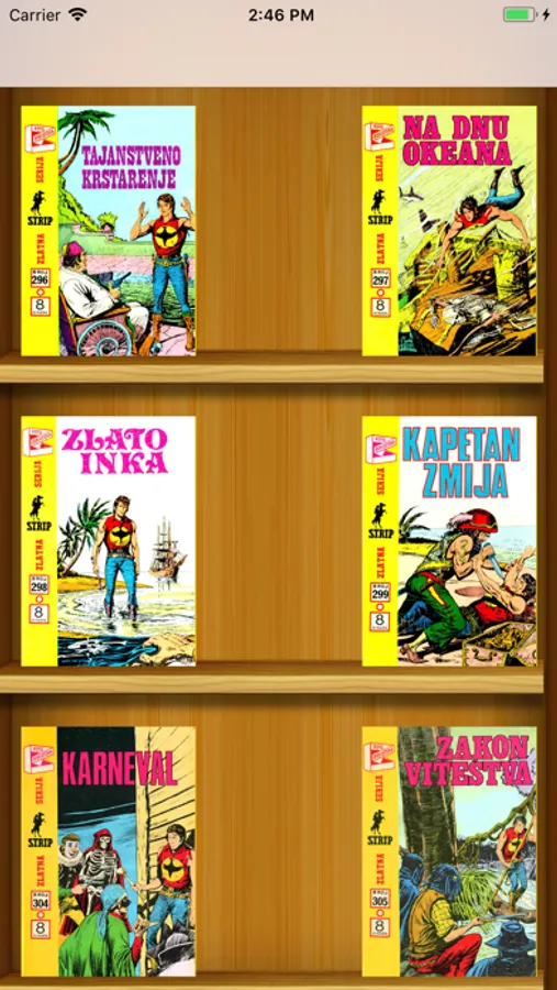 Aplikacija kronološki pokriva 30 stripova Zagor iz Zlatne Serije, kao 2. od 10 kolekcija
