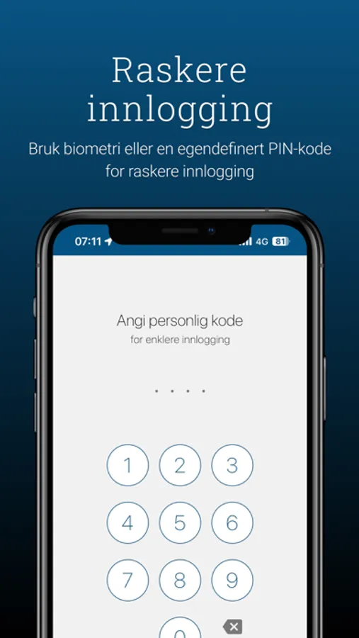 For å ta i bruk FRR-appen må du først logge inn med ID-porten. Denne innlogging er gyldig sammen med en pinkode du oppretter eller biometri på telefonen i inntil 90 dager. Deretter blir du bedt om å logge inn med BankID igjen. Pinkode og/eller biometri-pålogging er med å sikre bruken av FRR-tjenestene samtidig som det gir deg en hurtig pålogging til tjenester du trenger.