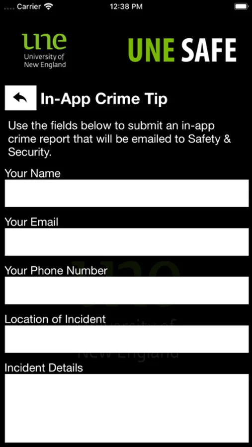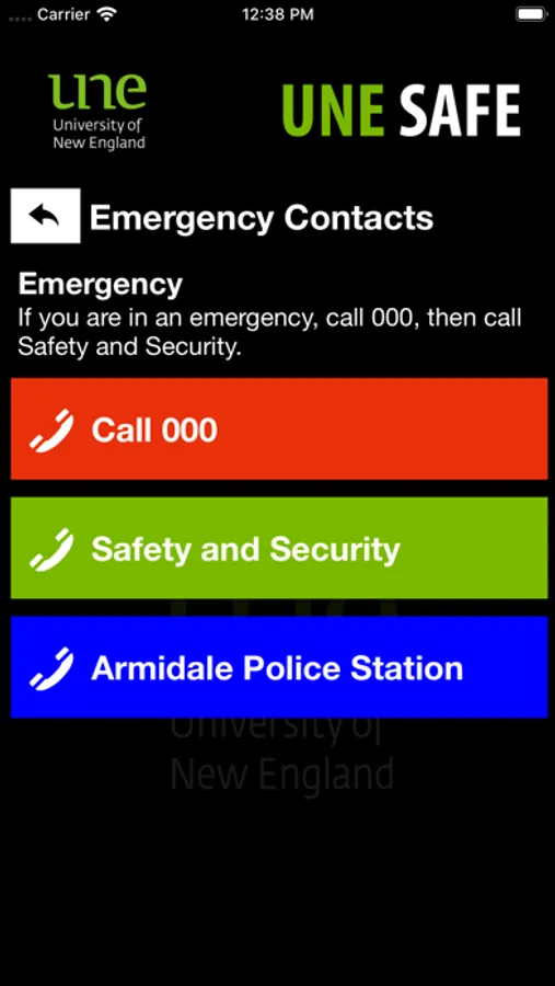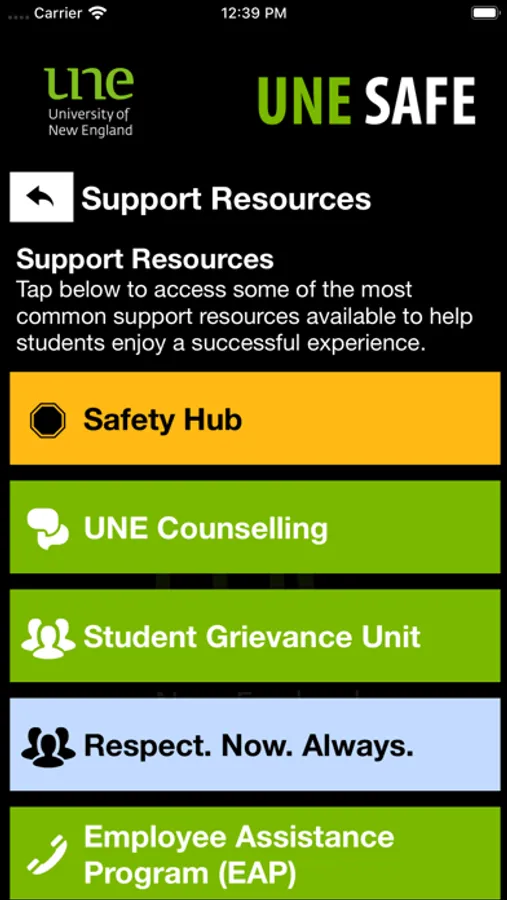 UNE Safe is an essential tool to enhance your safety at the University of New England. The app will send you important safety alerts and provide instant access to campus safety resources. UNE Safe is the official mobile safety app of the University of New England.