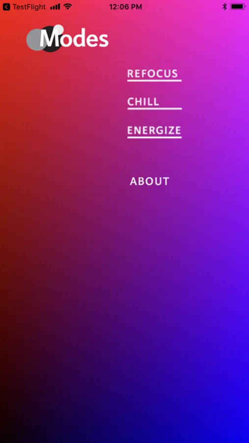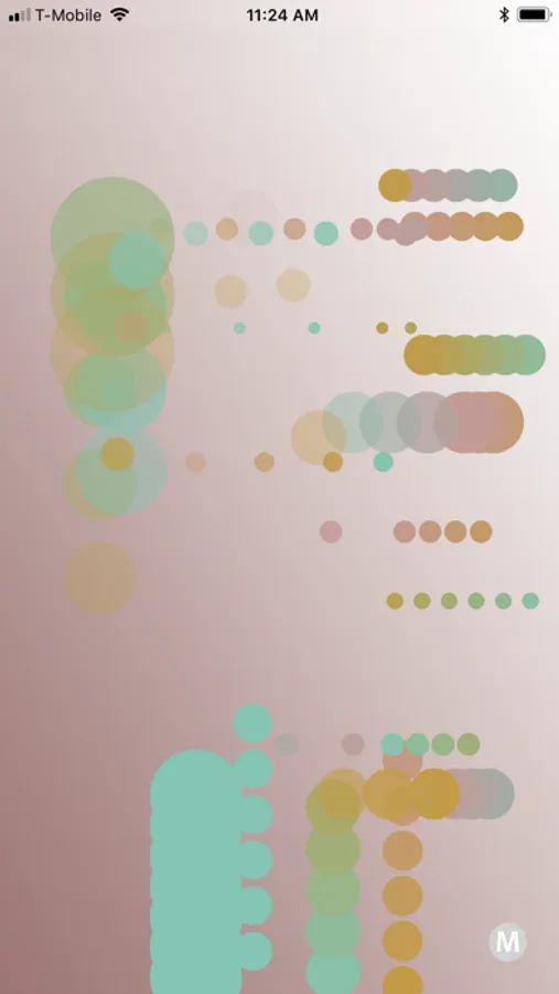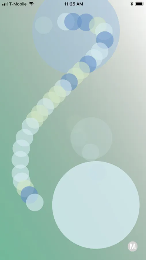 Interacting with Modes is like playing in a sandbox of dynamic visuals and music. Each Mode offers a unique set of visuals and music designed for anxiety reduction. Different visual and sound landscapes appear as you tap, swipe, draw, pinch, and hold down with one finger.