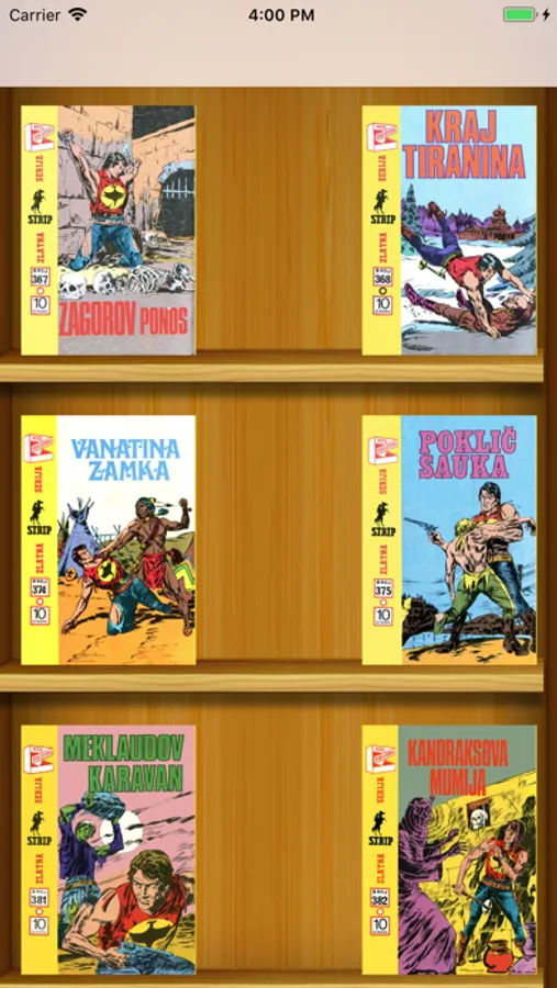 Aplikacija kronološki pokriva 30 stripova Zagor iz Zlatne Serije, kao 3. od 10 kolekcija