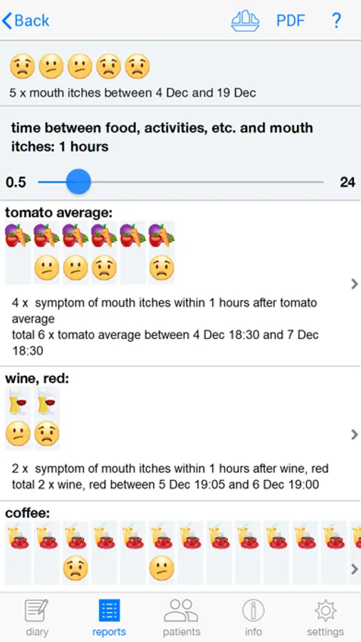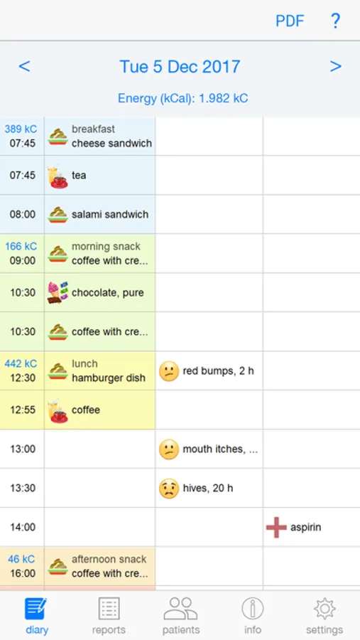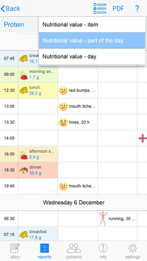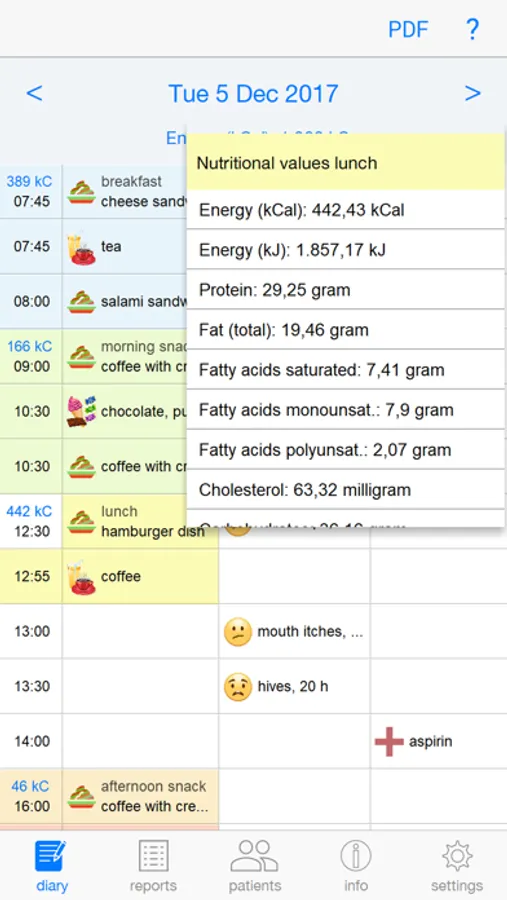 - The diary and analyses can be exported from FoodSQCare as PDF documents, which can easily be shared or included in a (digital) healthcare file.