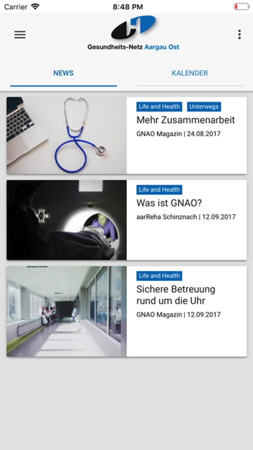 Alle Partner des Gesundheits-Netzes Aargau Ost lassen ihre Neuigkeiten und Publikationen in die GNAO App einfliessen. Wählen Sie einfach die Themen oder Institutionen aus, die Ihnen besonders am Herzen liegen und lassen Sie sich regelmässige Updates zu Ihren Wunschthemen senden. So verpassen Sie ab sofort keine News mehr! Auch aktuelle Veranstaltungen und Events in Ihrer Nähe können Sie per App bequem jederzeit nachschauen und sich bei Interesse die Teilnahme sichern.