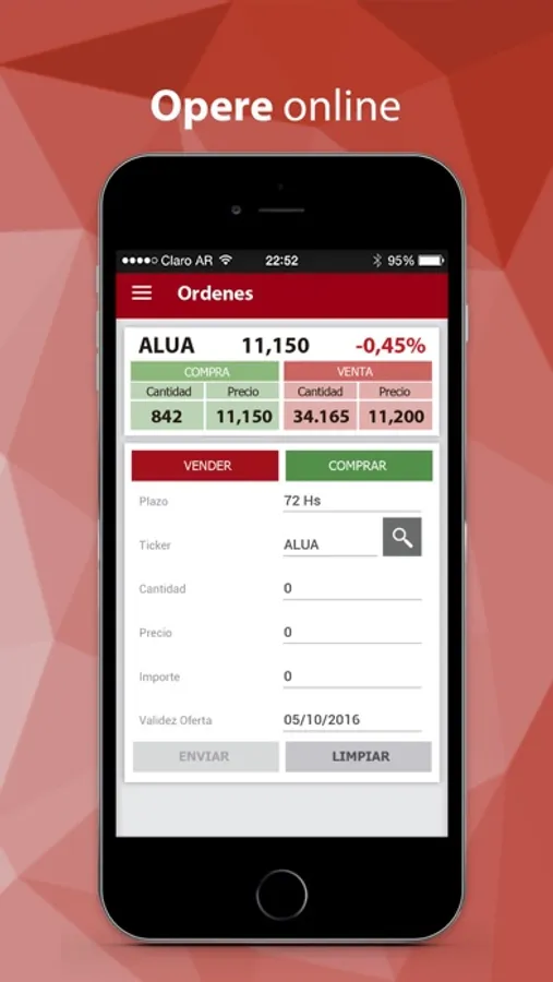 Haciendo clic en cada especie, accedemos a información de la misma. Desde esta pantalla también se puede ingresar una orden, presionando el botón de C/V