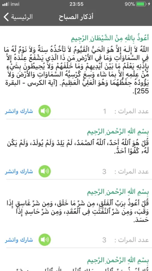 خاصية التذكير بأذكار الصبح والمساء.