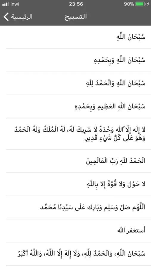 يتكون التطبيق أيضا من التسبيح وإمكانية إختيار التسبيحة المفضلة و من خلال التطبيق يمنحك عداد الإستغفار أو عداد التسبيح المسبحة الالكترونية