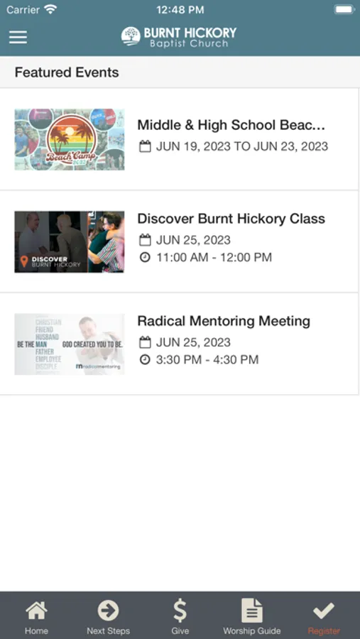 The Burnt Hickory App is the simplest and best way to connect with Burnt Hickory, the church for families! We have programs and services for all ages, and you can find all you need to know right here on the App. Events calendars, sermon notes, giving and serving options are accessible at your fingertips. Thank you for your interest in Burnt Hickory and welcome home!