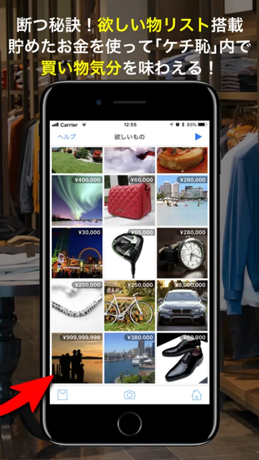 欲しい物と金額を決めて画像保存。貯まったお金でバーチャルな買い物が出来る!