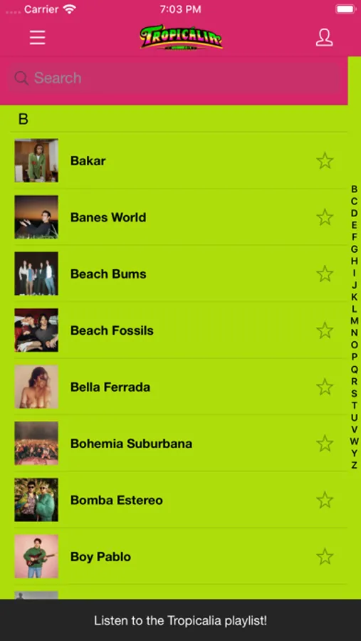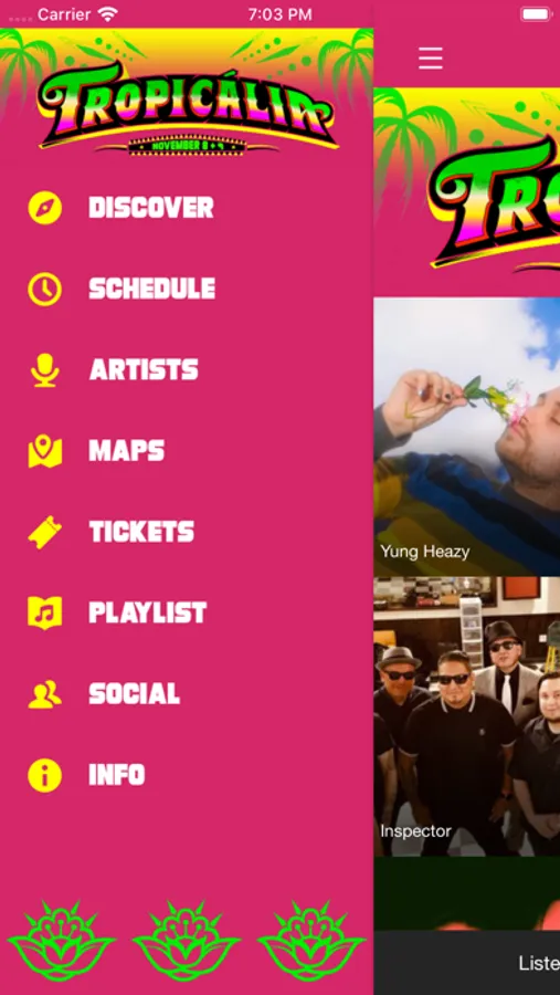 Welcome to the official 2019 Tropicalia Fest mobile app! Use it to check out the lineup, discover new artists, create your own custom schedule, navigate the festival and keep up-to-date with breaking information.