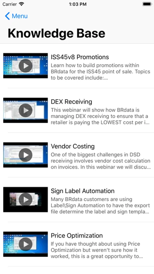 Knowledge Base: Quickly view all of our BRdata webinars from your mobile device.