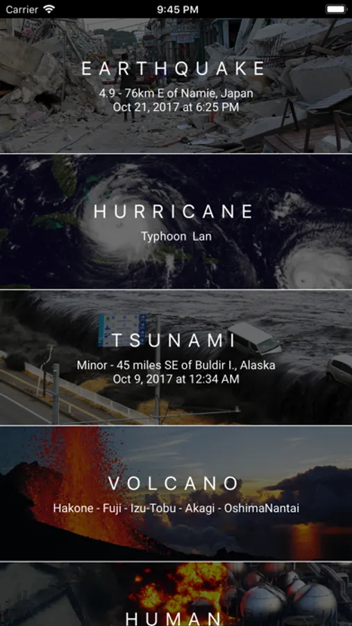 The most common hazards such as earthquakes and cyclones, or tsunamis and volcanoes are already available in the application.