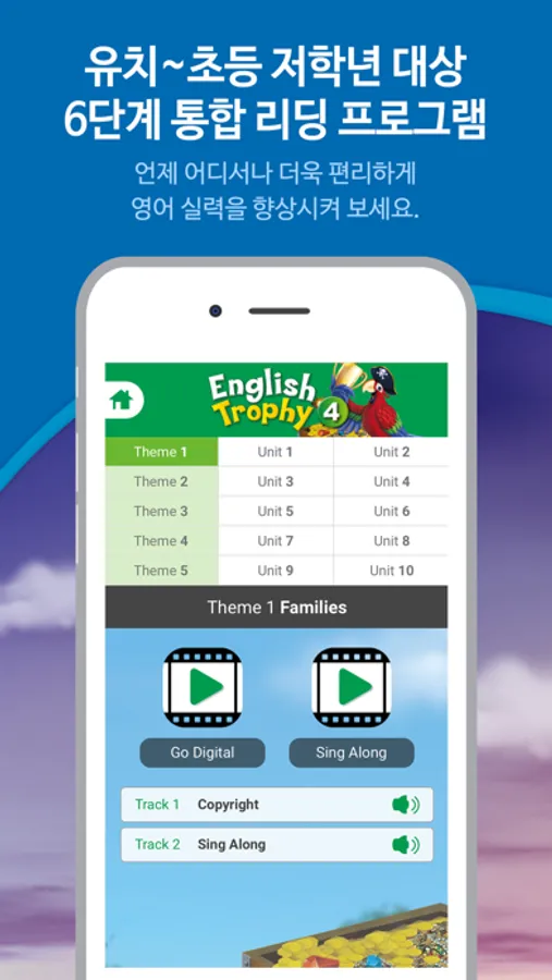 잉글리시 트로피는 유치~초등 저학년 대상의 6단계 통합 리딩 프로그램입니다.