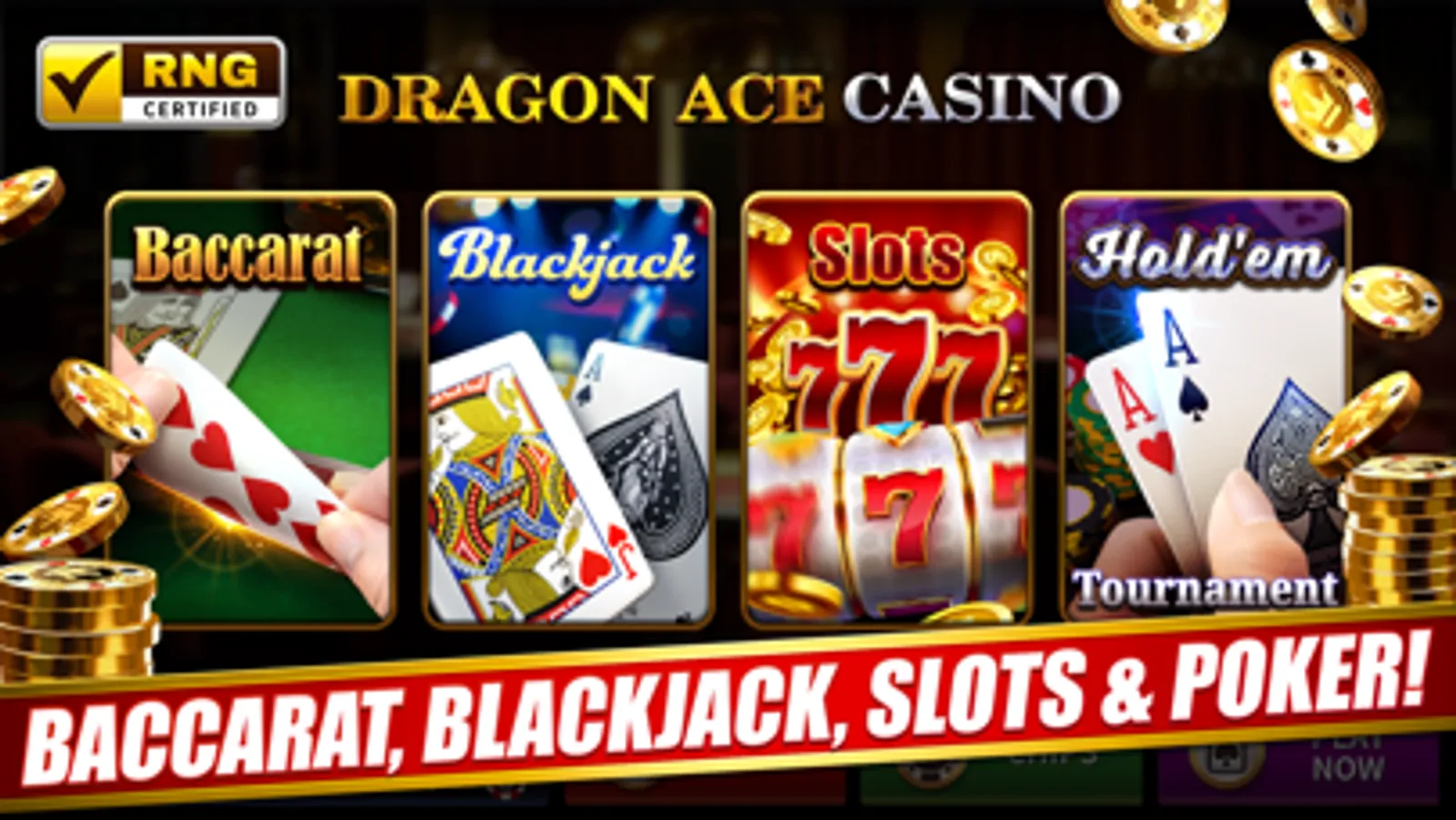 If you love playing card and casino games like Baccarat, Blackjack, Texas Hold'em Poker, Slots 777 or Roulette, you should try Dragon Ace Casino Games!